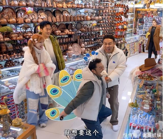 其后以为盘子不够,更是看上了300多的孔雀摆件。 徐志胜不给他买,他还蹲在地上撒娇,一副小孩子向家长要玩物的既视感。